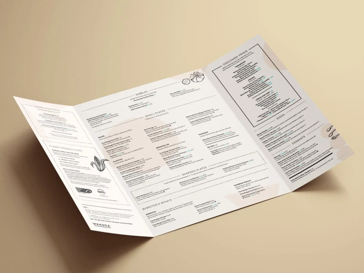 The design direction of the new menu suite for Wahaca speaks to the quality and craft of the food and drink offering in restaurant.